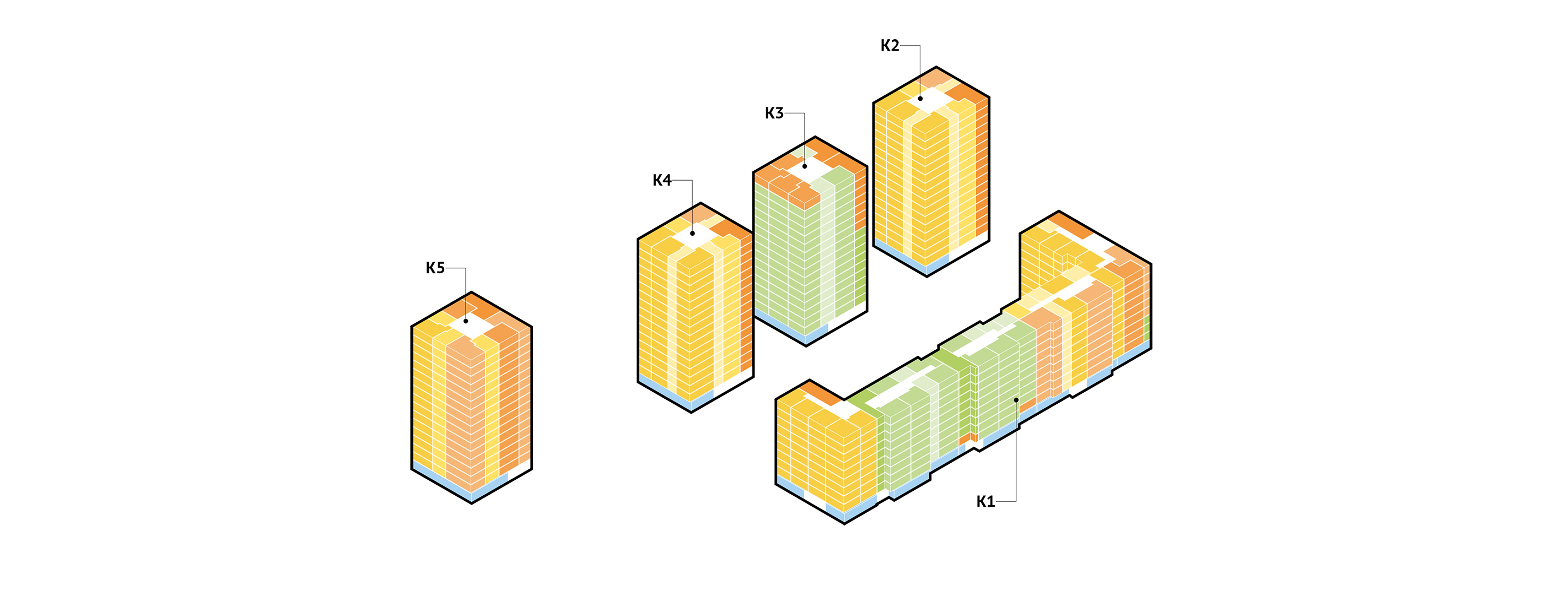 Проект ЖК с необычной пластикой фасада.